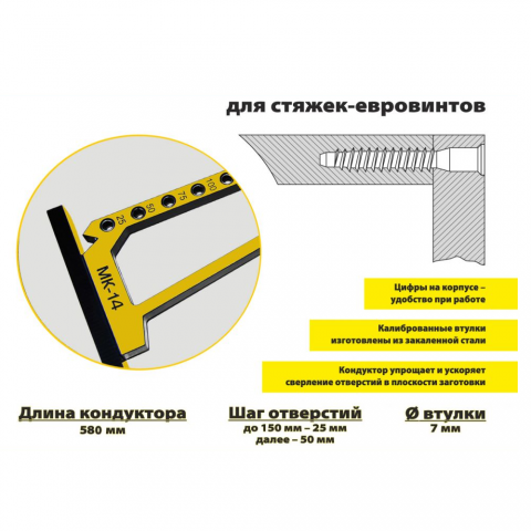 МК-14 Мебельный кондуктор "угольник" система "25/50" диаметр втулки 7 мм.;