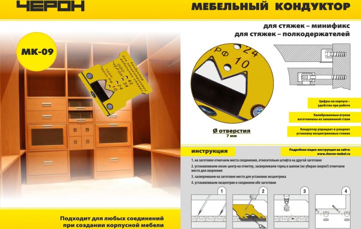 МК-09, мебельный кондуктор для эксцентриковых стяжек (мини-фикс), стяжек-полкодержателей